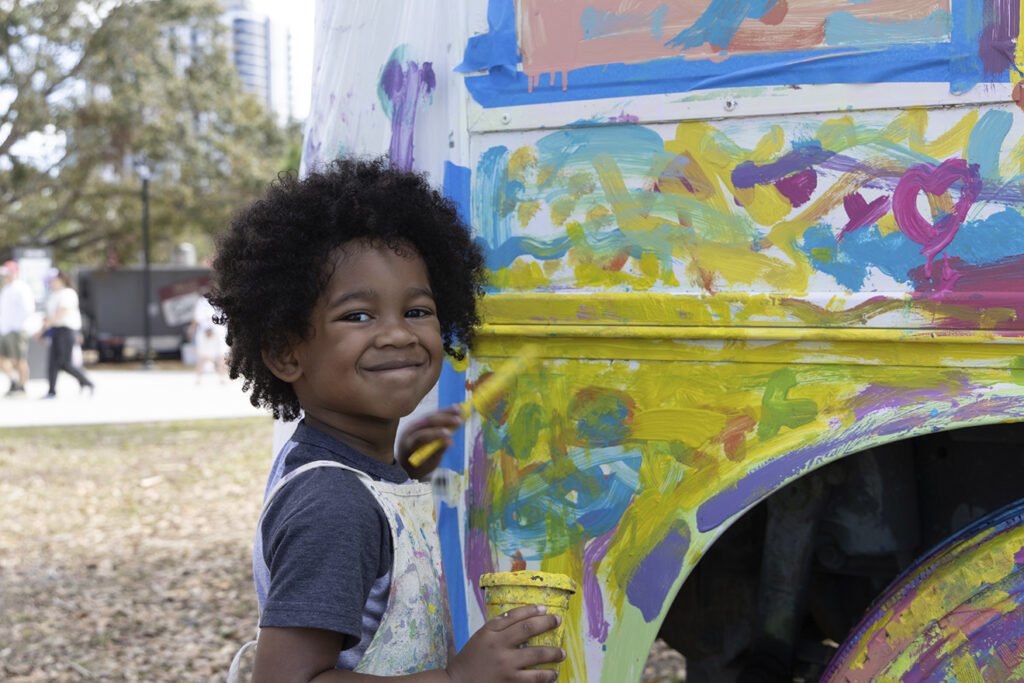 For guests eager to get hands-on with creativity, the festival offers interactive art experiences for all ages. The Nomad Art Bus invites everyone to help paint its ever-changing mobile canvas, while CARMADA—sponsored by Tampa Hybrids—brings live car-painting demonstrations to the park. At the Tampa Museum of Art’s Children’s Area, young creators can make and take home their own masterpieces.