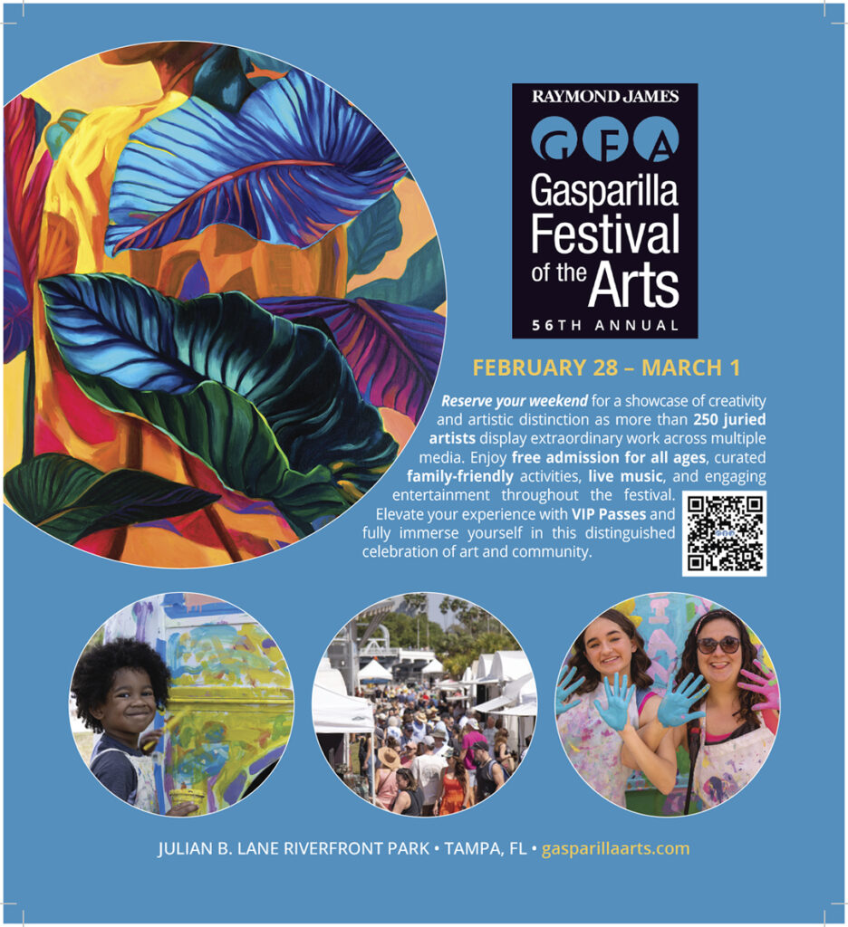 When the Raymond James Gasparilla Festival of the Arts (GFA) returns to Julian B. Lane Riverfront Park on February 28–March 1, 2026, it will once again transform downtown Tampa into an open-air museum filled with color, creativity, and connection. Now celebrating its 56th year, the festival has grown beyond its roots as a regional event to become one of the nation’s most respected outdoor juried art shows. This annual tradition draws artists, collectors, families, and cultural explorers from across the country.