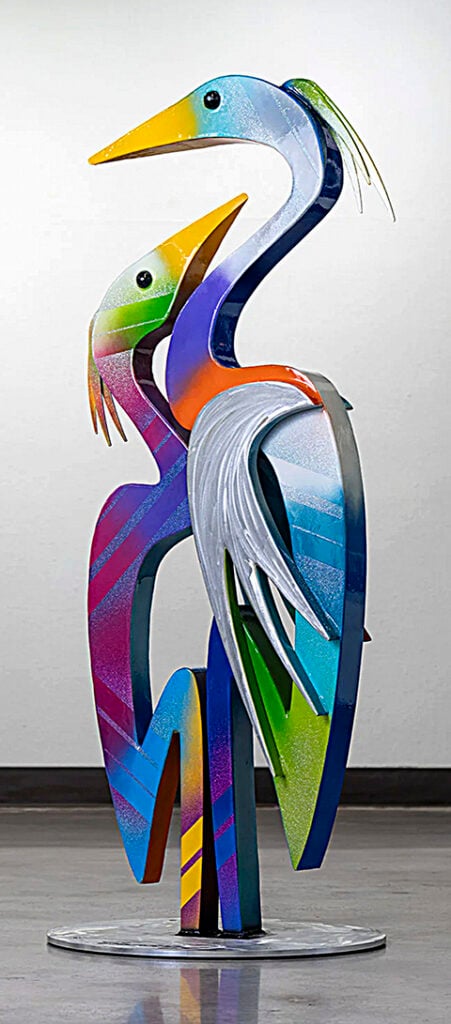 The 2026 featured artist, Clayton Swartz of Pinellas Park, embodies that local connection. A metal sculptor known for complex, biomorphic forms in vibrant colors, Swartz draws inspiration from sea life, faith and family. Trained in welding techniques such as MIG and TIG, plasma cutting, and custom finishing, he blends craftsmanship with imagination, creating works that invite viewers to pause and look again.